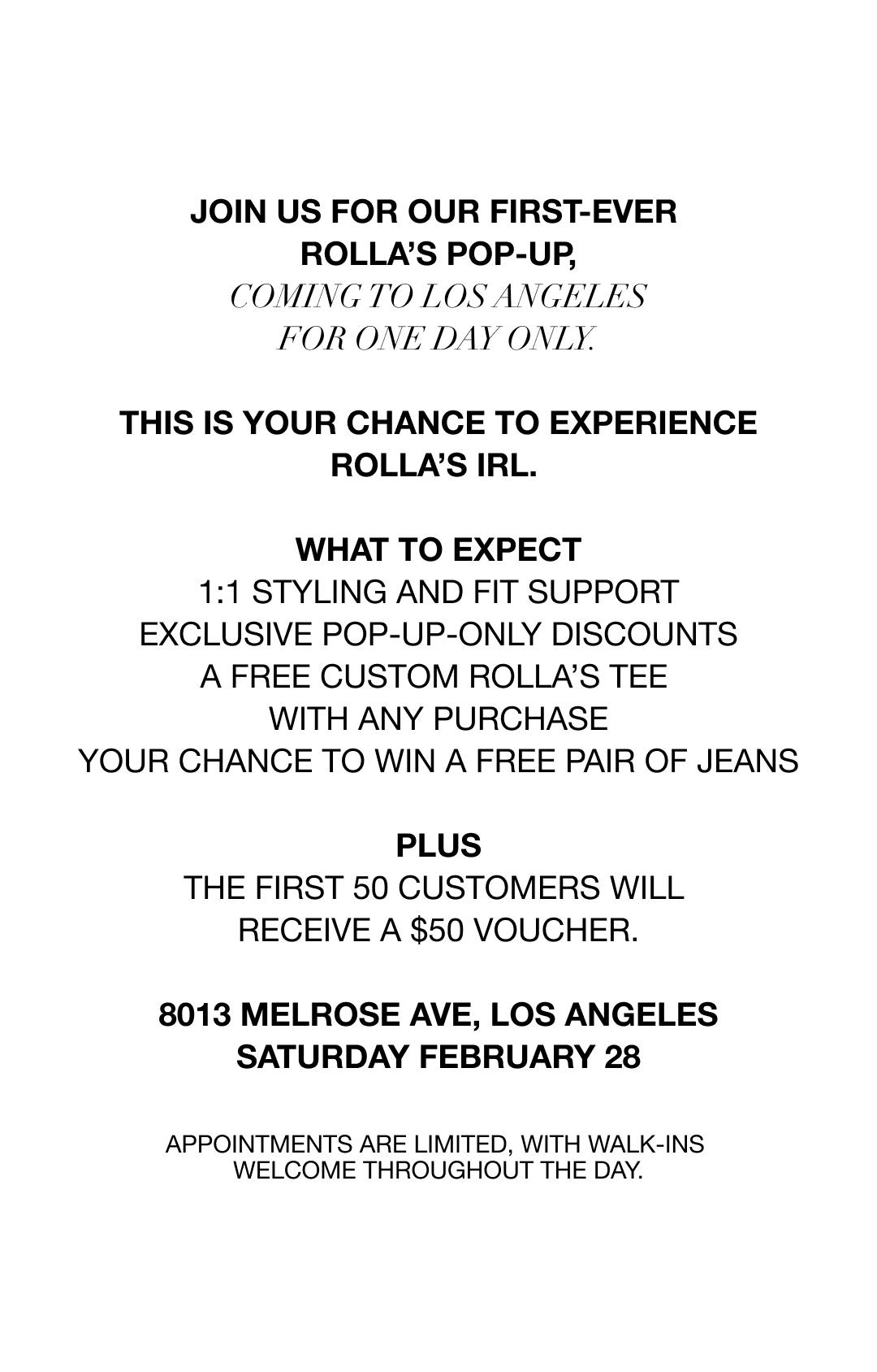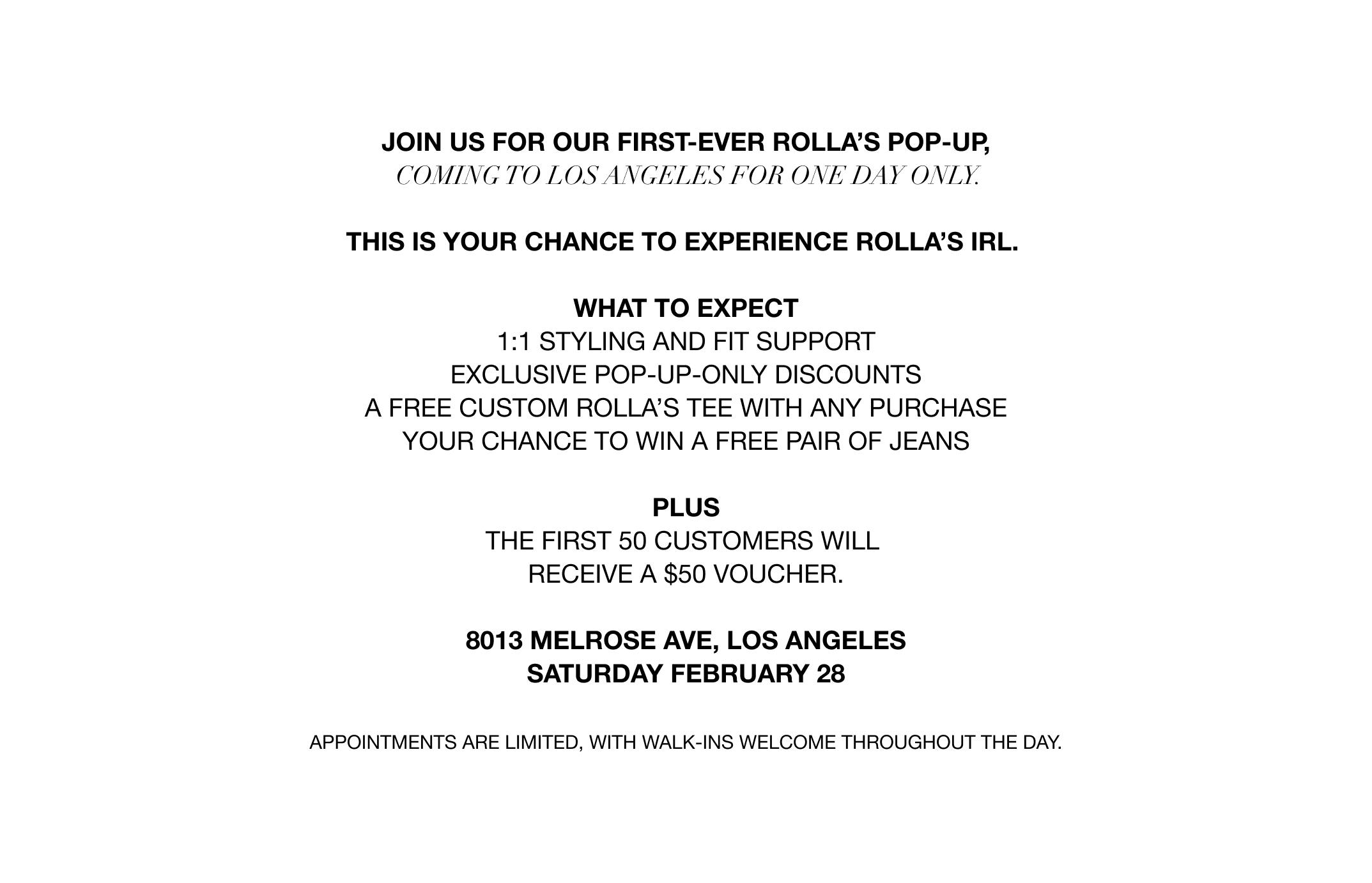 Rolla’s World is landing on Melrose Avenue, Feb 28. Sign up for first access, giveaways, and what’s to come.